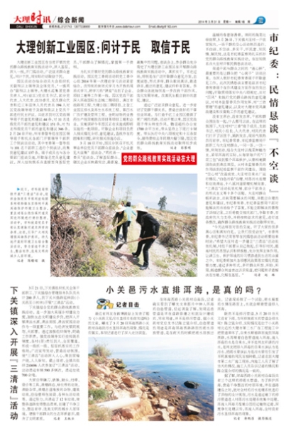 为扎实开展好党的群众路线教育实践活动,园区党工委将活动同党工委中心组2014年第一次理论学习活动紧密结合,改传统的封闭式学习为开放的现场式学习,将学习的“课堂”设到了企业、项目工地等工作第一线。园区党政干部深入洱海国际生态城二期项目、满江市政路网工程、大理公馆二期项目、上登工业园区排水及再生水系统工程、第四水厂改扩建及管网工程、金明动物药业兽药生产线异地技改项目等项目工地和企业,实地调研今年园区正在实施或即将实施的一批项目,听取企业和项目负责人相关情况介绍、意见建议,查找存在的困难和问题,研究相关措施办法。