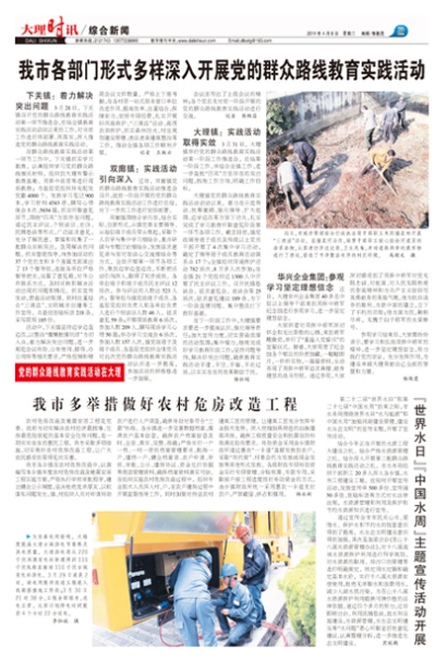 结合今年正在开展的水源工程大建设之机、结合严格水资源管理之机、结合深入开展第二批群众路线教育实践活动之机,市水务局组织干部职工20多人深入各乡镇,水利工程建设工地,挂钩村开展宣传活动,发放宣传单500多份、宣传画50多张、张贴标语等方式对水法律法规,水资源管理和利用及保护和节约水资源知识进行宣传。