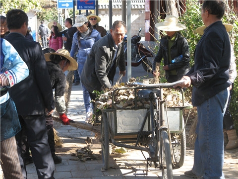 目前,大理市在实行门前“包卫生、包绿化、包秩序”基础上,各乡镇发动群众全面清理粪堆、土堆、柴堆,治理乱倒垃圾、乱泼污水、乱搭乱建、畜禽乱跑,美化村口、路口、家门口。同时,深化垃圾收集清运体系,坚持“镇主导、村负责、同参与、齐保洁”,通过“政府补助、村民自筹”经费,公开竞标、承包运营垃圾,促进垃圾收集清运规范化。
