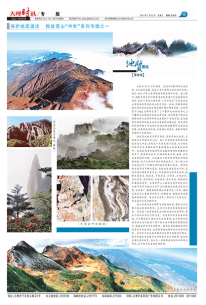 在距今10~2亿年期间,受到古特提斯海洋盆分裂、古大陆的碰撞,完成了由大洋到大陆的演化过程;距今4500万年以来伴随着青藏高原的形成,苍山隆升,相继洱海沿红河断裂活动发展演化形成高原断陷湖泊,表现了喜马拉雅南段“三江并流区”巨型复合造山带复杂而宏伟的造山隆升历程。此地,特提斯构造域的演化特征及扬子构造域的特征都有反映。在东西宽约13km范围内包含了2个Ⅱ级大地构造单元,5个Ⅲ级大地构造单元的地质现象,这种现象只有在受到强烈挤压走滑的特殊地质条件下才能形成,是大陆特殊构造部位地壳运动的重要地质遗迹区,是欧亚板块西南部扬子古板块与印度板块碰撞事件记录系统完整、出露典型的地域,为追溯大陆拼合、离散早期历史提供了直接佐证。