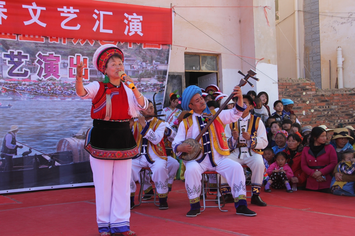 近年,在海东镇活跃着一支以白族大本曲为主要表演内容的文艺队———大理海东蓝盔大本曲宣讲团。宣讲团成立后,以当地百姓喜爱的大本曲、小白剧、白族调、洞经音乐、霸王鞭、绕三灵等白族歌舞为主要艺术形式,歌唱海东开发,赞美新农村建设,宣传洱海保护、十八大和十八届四中全会精神。宣讲团每年在海东及周边地区巡回演出30多场次,既丰富了群众生活、传承并弘扬了优秀历史文化,又有力推动精神文明建设。 杨映石 摄
