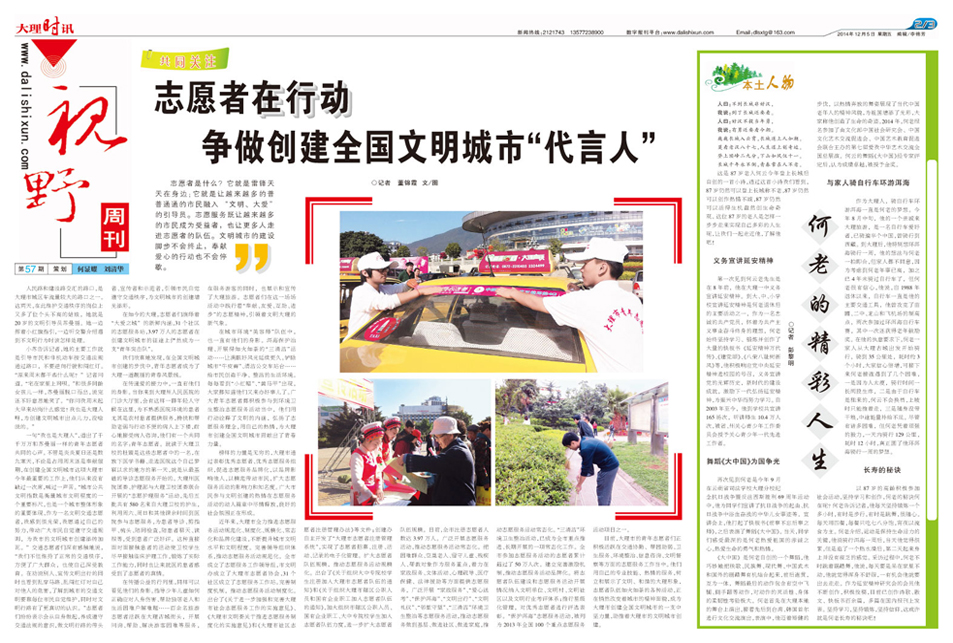 以87岁的高龄积极参加社会活动,坚持学习和创作,何老的秘诀何在呢?何老告诉记者,他每天坚持锻炼一个多小时,有时是步行,有时是跳舞,很随心。每天用四餐,每餐只吃七八分饱,宵夜以流食为主。何老介绍,运动是保持生命活力的关键,他说骑行洱海一周后,当天他觉得很累,但是泡了一个热水澡后,第二天起来身上并没有疲乏的感觉。采访过程中,何老不时跳着踢踏舞,他说,每天要是呆在家里不动,他就觉得浑身不舒服,一有机会他就要出去走走。作为延安精神研究会的会员他不断创作,积极投稿,目前已创作诗歌、散文、快板书百余篇,多篇在国内报刊上发表。坚持学习,坚持锻炼,坚持信仰,这或许就是何老长寿的秘诀吧!