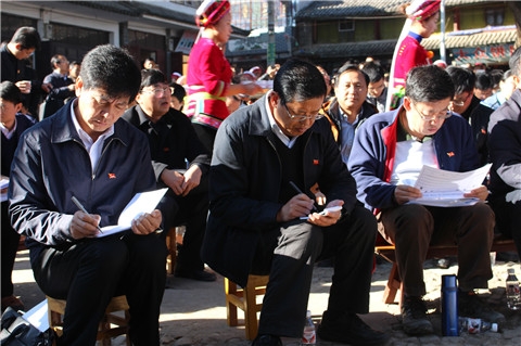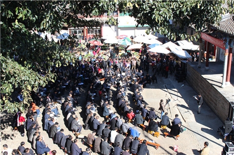 古戏台前,大青树下,200多名与会人员每人一个小板凳,聚精会神地听取曲靖市、红河州等7家单位的交流发言,以及今年全省基层服务型党组织建设布局突破取得的成效、明年全省基层服务型党组织建设全面铺开工作的有关部署。