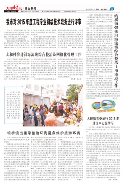 近期,湾桥镇围绕争创大理市生态文明建设样板和典范的目标,针对当前工作薄弱环节,提出下一步工作要强抓洱海流域综合整治十项重点工作,铁腕治理保护洱海。