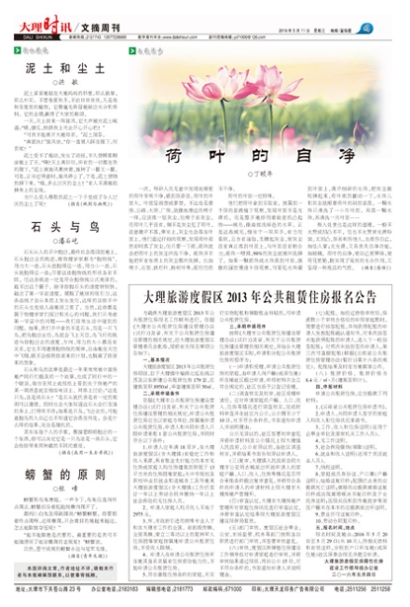 为确保大理旅游度假区2013年公共租赁住房报名工作顺利进行,依据《大理市公共租赁住房建设管理办法(试行)》及省、州关于公共租赁住房建设管理的相关规定,经大理旅游度假区管理委员会批准,现将有关报名事项公告如下: