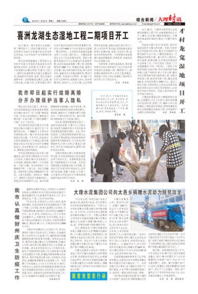 11月20日,大理市洱海西岸生态湿地恢复建设工程才村、龙龛湿地项目正式开工建设,标志着大理旅游度假区、大理镇洱海流域环境综合整治工作翻开新的一页。