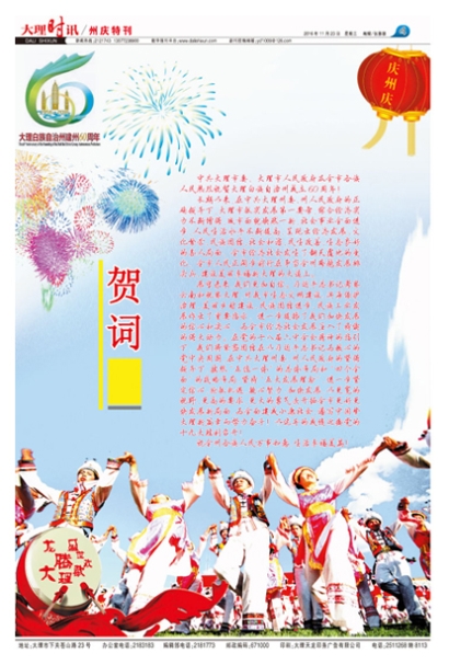中共大理市委、大理市人民政府及全市各族人民热烈祝贺大理白族自治州成立60周年!