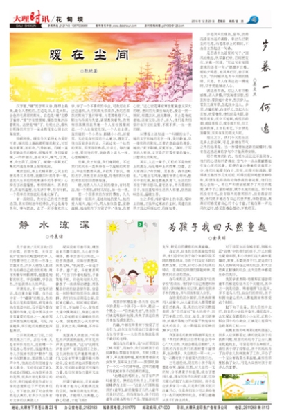 汉字里,“暖”的字形义音,称得上最美,最令人喜悦的。左边是日,日是太阳,金色的毛茸茸的阳光。右边是“缓”去掉了偏旁,“爰”字在缓缓地、慢悠悠地沐浴着阳光。这便是“暖”了。轻轻吐出,像秋日明净的天空下一朵朵棉花在心田上次第绽放。