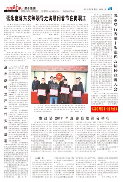 1月18日,市政协举办2017年度委员培训会,组织市政协九届委员会委员系统学习人民政协基本理论、基础知识,进一步提高全体委员整体素质,从而更好地肩负起为全市经济社会发展参政议政、建言献策职能。