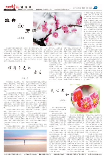 我心当如花,向往太阳给予的光明;我心当如花,绝不顾影自怜,也不孤芳自赏;我心当如花,明澈空明,鄙弃污浊;我心当如花,坚强如斯!