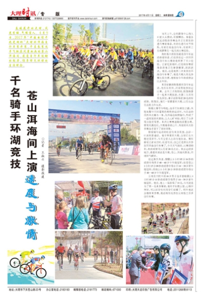 春暖花开的大理,风光秀丽、气候宜人。4月9日,2017年“中国电信千兆光网杯”大理环洱海自行车赛开赛,千名参赛选手飞驰在风景如画的苍山洱海间,感受自行车运动的魅力,倡导绿色环保的生活理念。