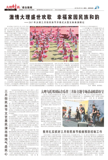 富有感染力的民族舞蹈、声情并茂的民族歌曲、贴近生活的小白剧,在几尺见方的小舞台上,演员们倾力奉献出的完美表演,打通了文化惠民服务群众的“最后一公里”, 既丰富活跃了群众的节日文化生活,又为三月街民族节增添了祥和喜庆的气氛。 记者 赵 璐