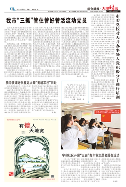 5月4日,下关镇宁和社区组织辖区企业和志愿者深入下关敬老院、湿地公园开展“五四”青年节志愿者服务活动。