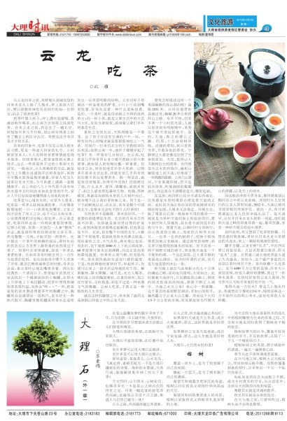 把茶叶置入杯子,冲上沸水泡着喝,普通话称作喝茶,而云南方言却将之说成吃茶。在来云龙之前,我还去了一趟北京。但短短不多几天行程,却让我对两者之间有了概念上的区分认识。我想这还并非仅是方言的关系。