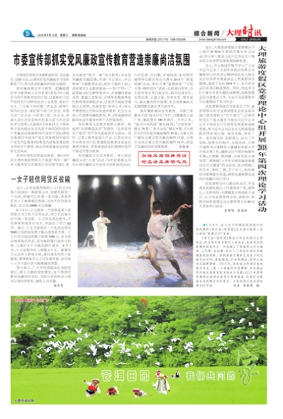 抓好廉政建设宣传教育。市级三家媒体开设“政风行风”专栏,刊播廉政公益广告、廉政警言300多条次。今年以来,“政风行风热线”播出18期,“大理热线”播出78期,“清风论坛”播出9期。《大理时讯》刊发党风廉政稿件49篇,大理人民广播电台播出党风廉政稿件12篇,大理市电视台播出党风廉政稿件18条,营造了崇廉尚洁的浓厚氛围。 张春源