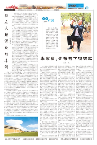李家福,男,彝族,1958年出生于洱源县茈碧湖镇大松甸村松鹤自然村,1974年正式拜师学吹唢呐,1978年学成开始“应事”,并收徒弟,截止目前徒弟中可以单独应事的有36人,数十年来唢呐演奏多次获省、州奖项。2010年被评为大理州第一批民族民间传统文化保护项目(民间音乐)代表性传承人,目前已上报省级传承人。
