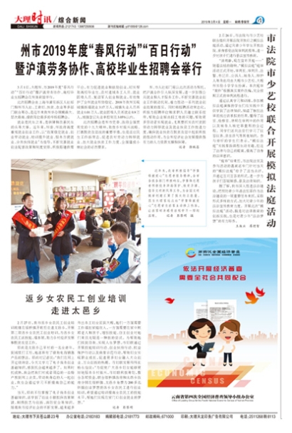 3月1日,大理州、市2019年度“春风行动”“百日行动”暨沪滇劳务协作、高校毕业生招聘会在州体育馆举行。