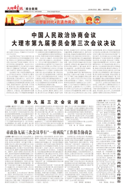 中国人民政治协商会议大理市第九届委员会第三次会议,于2019年3月2日至5日在下关召开。