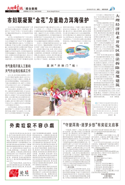 “洱海清,大理兴”。洱海,是大理人民的“母亲湖”,是大理人民赖以生存和发展的根基,是大理的核心竞争力和魅力所在。近年来,我市牢记习近平总书记“一定要把洱海保护好”的殷切嘱托,切实扛起洱海保护治理的政治担当、历史担当和责任担当,全市干群齐心、众志成城,举全市之力推进洱海保护治理攻坚战和持久战。洱海保护治理“七大行动”工作卓有成效,洱海生态环境保护“三线”划定等工作扎实推进……2018年,全湖水质实现了7个月Ⅱ类目标,洱海保护治理工作取得阶段性成效。新年伊始,洱海保护治理开启新篇章、迈向新征程。当前,我市全面部署各项工作,坚决打赢“八大攻坚战”,确保洱海保护治理及流域转型发展取得新成效。为进一步加强洱海保护宣传工作,动员每一个人从自己做起、从点滴做起,自觉参与洱海保护,持续发力打好洱海保护治理攻坚战,即日起中共大理市委宣传部和本报共同举办“守望洱海·逐梦乡愁”有奖征文活动。