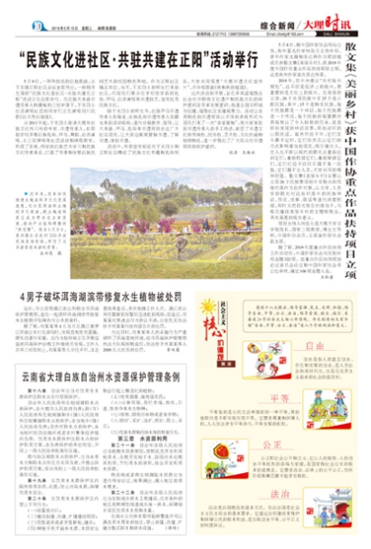 活动中,州委宣传部还向下关四小和正阳社区赠送了民族文化书籍和扎染制品,大家共同观看“大理非遗文化宣传片”,并齐唱歌曲《我和我的祖国》。