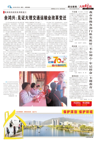 如今的大理,路网建设四通八达,火车、动车、航班等多元化的出行方式,给人民群众出行带来更多的选择,同时也极大地推动着大理地区经济社会飞速发展。让世界认识大理,让大理走向世界都不再是梦。余鸿兴激动地说:“看到今天大理地区的发展,我们这一代交通人是比较欣慰的。虽然退休了,但我们会继续关注交通事业,为大理地区的经济发展,为国家的繁荣富强发挥自己的余热。” 记者 马 驿 徐建伟