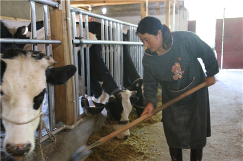清晨6∶00,天色已大亮,家住石块村大湾组的龚明艳在简单的洗漱后,便一头扎进了奶牛圈中。拌料、喂料、挤奶、铲粪……复杂的工序耗费着大量的体力,忙活了2个小时的龚明艳早已满头大汗,赶着10多头“荷斯坦”奶牛出了牛圈,龚明艳总算歇了一口气。