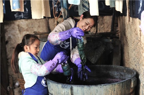 “有很多学校的孩子,像北大附中的孩子,他们每年会花4天的时间在周城,在这个乡村只做一件事情,就是扎染。我们尽力给他们真正专业的服务,他们也希望可以多做有意义的事情。所以这几年蓝续开办了很多从7岁以上的孩子就可以体验的项目,五六十岁老人也可以去选择定制的课程,这个季节蓝续都是预约满的。”张翰敏说,蓝续不太会去追市场,反而觉得要好好地把周围的环境认识清楚,把自己的优势、自己的核心竞争力转化为生产力。因为传统的手工技艺一定也要成为一种生产力,它才可以很好地发展起来。