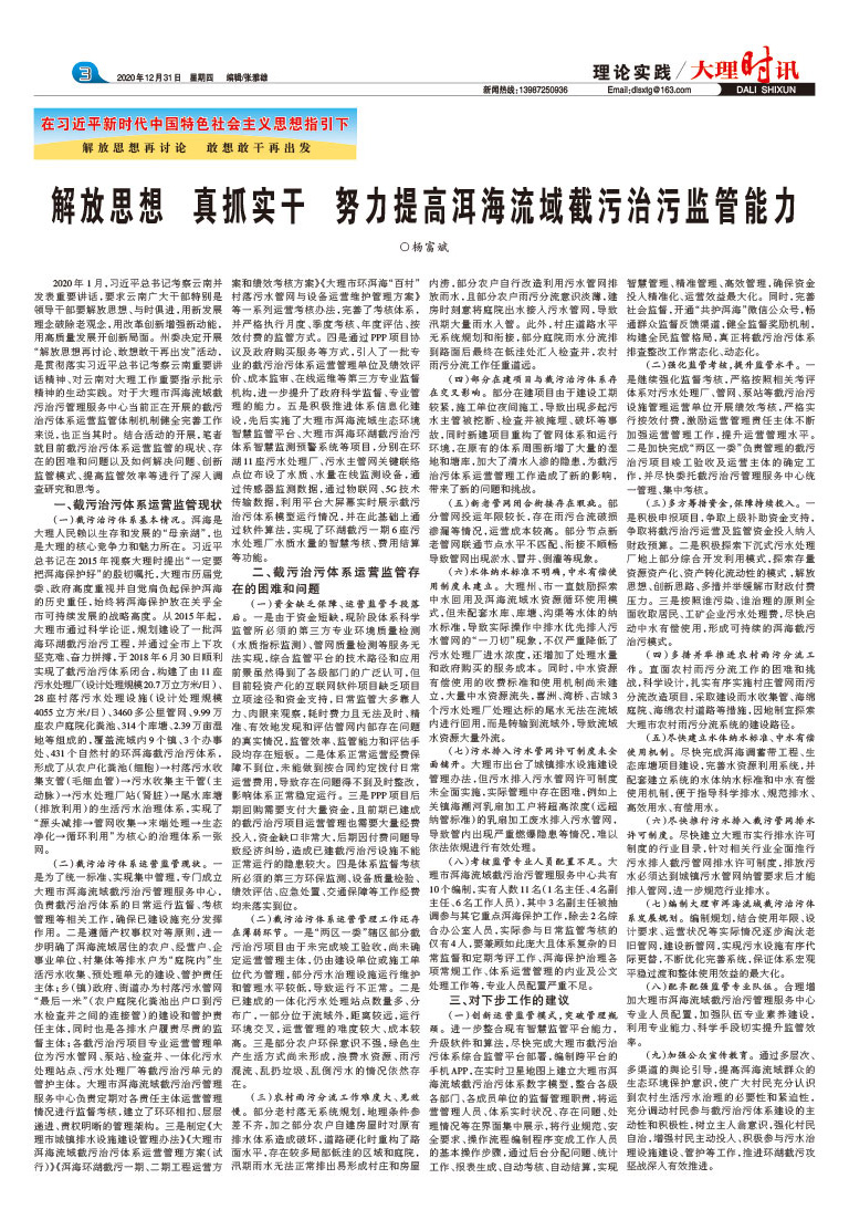 解放思想 真抓实干 努力提高洱海流域截污治污监管能力