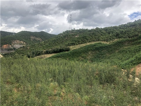 在实施生态治理修复过程中,我市根据矿山的开采现状及矿区地质地形的特点,主要采用以机械进行削坡卸载,消除坡面危岩体和浮石;通过人工清理边坡,除去表面浮土和杂草、平整坡面,为植被恢复创造良好立地条件。修复方式本着宜喷则喷、宜栽则栽、宜播则播的原则,对边坡采用挂网固定、团粒喷播的工艺进行生态恢复;对宕底采用种植土回填、栽植本地树种旱冬瓜;对立地条件良好区域作撒播乔灌草籽的方式进行复绿。
