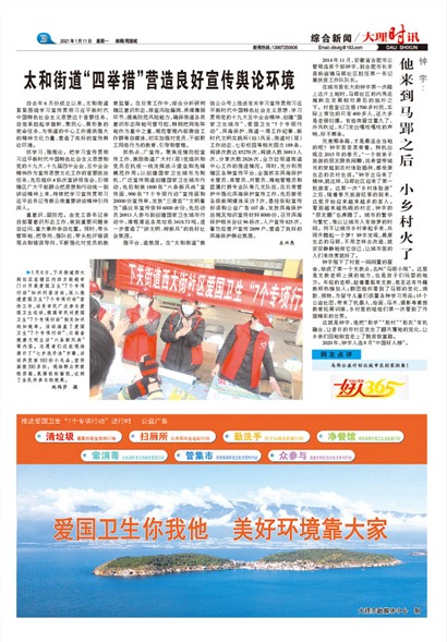 抓热点、广宣传。聚焦疫情防控宣传工作,激励街道广大村(居)党组织和党员在抗疫一线发挥战斗堡垒和先锋模范作用;以创建国家卫生城市为契机,广泛宣传街道创建国家卫生城市行动,先后制做1800张“六条新风尚”宣传画、900张“7个专项行动”宣传画和20000份宣传单,发放“三清洁”“文明餐饮”倡议书宣传资料6000余份,先后动员26911人参与到创建国家卫生城市行动中,清理清运各类垃圾3418.73吨,进一步营造了“讲文明、树新风”的良好社会氛围。