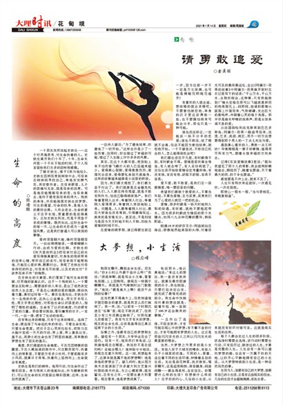 没有等出来的辉煌,只有干出来的精彩。选择了生命,便选择了与命运抗争的举动。不管生命长短,只管生命宽度。把日子在心灵深处拉长,把努力在头脑中变成一天天的行动,带上爱,带上善良出发,基于此,再渺小的生命也有了明显的高度,再卑微的梦想也有了坚实的基石。
