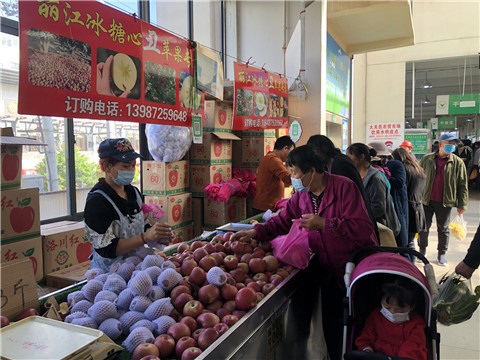 早上10时多,正是大关邑农贸市场最热闹的时候,在市场二楼水果区商户杨会发的摊位前,挤满了前来选购苹果的市民。“我们在大关邑菜市场摆摊已经摆了十几年了,以前在大路上、在河边的时候,条件很不好,每天都要顶着风吹日晒。”杨会发一边招呼买苹果的顾客,一边告诉记者,“自从搬进这个新市场里,条件相当好、设施相当齐全、管理相当规范,市场也给我们经营户很多优惠政策。刚搬进来的半年一楼摊位租金是免费的,在二楼的是免费一年,有了这些优惠政策,我们的生意也比以前越来越好了。”