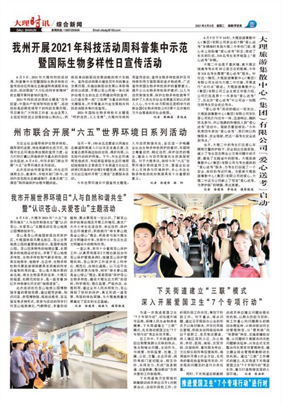 6月5日,2021年大理州科技活动周、科普集中示范暨国际生物多样性日宣传活动在洱海生态廊道阳南溪服务站启动,活动围绕“大力弘扬科学家精神”的主题开展科普知识宣传。