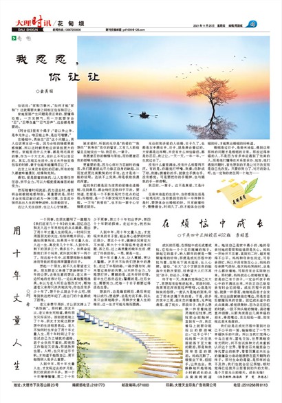 家庭里面产生问题是很正常的,要懂得处理。一方发脾气,另一方就要学会“忍”。“忍辱负重”“忍气吞声”,这些都是需要的。
