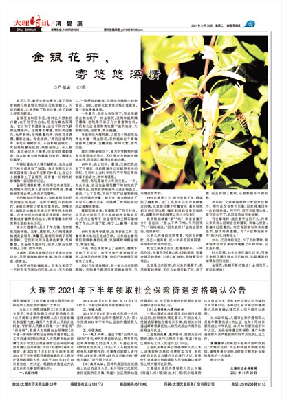 1993年春夏之交,我出差到下关,顺道回了趟喜洲。进门,见到年迈的双亲戴着老花镜,在金银花棚下听着音乐,喜欢剪纸的父亲正在执剪,擅长刺绣的母亲在做绣球,温馨而祥和的情景让我十分欣慰!