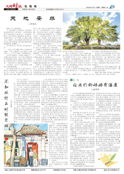以前,父母会关心我的学习和工作,问这问那的,事关个人进步和人际关系等,还总叫我要上进,要有自己的一片天地。不知从什么时候开始,他们不再关心我的事业,却说:“你也是个中年人了,上有老、下有小,压力大,得照顾好自己的身体,平时要多锻炼,别一天到晚坐在电脑前写个不停。也别太逼你自己的小孩,只要过得去就行。”