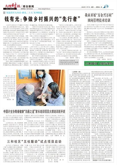 11月3日,以“睦邻共治 爱满三和”为主题的大理市太和街道三和社区“五社联动”试点项目启动。
