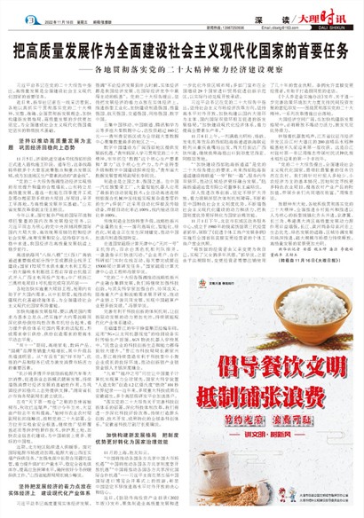 连日来,新华社记者在一线采访看到,各地以真抓实干贯彻落实党的二十大精神,完整、准确、全面贯彻新发展理念,加快构建新发展格局,高质量发展的步伐更加坚定,为全面建成社会主义现代化强国奠定坚实的物质技术基础。