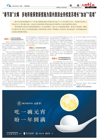 “兔年春节游火爆,既让我们旅游业者充满信心,同时也提醒我们要为后续的五一小长假、暑期、国庆黄金周等旅游旺季做好充分准备,包括从业人员的服务质量、智慧系统的便民程度、创新产品和服务的引入,都需进一步完善,以迎接文旅市场的进一步复苏与提升。”上海东方明珠广播电视塔有限公司总经理郭一峰认为,眼下不少旅游企业的在岗人员业务素养与能力只能说勉强“合格”,对适应和保障高品质服务需求恐怕仍有差距,“要保证持续复苏发展,扩充人力资源、抓好业务培训也是当务之急”。