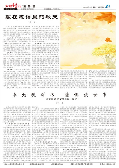 当然,与秋天有关的成语还有很多,如金风玉露、秋高气爽、桂子飘香、社燕秋鸿、寒蝉凄切、西风残照、秋月寒江、春兰秋菊等,这些成语言简意赅、生动形象、富有表现力,成为中国文化一道亮丽的风景线。