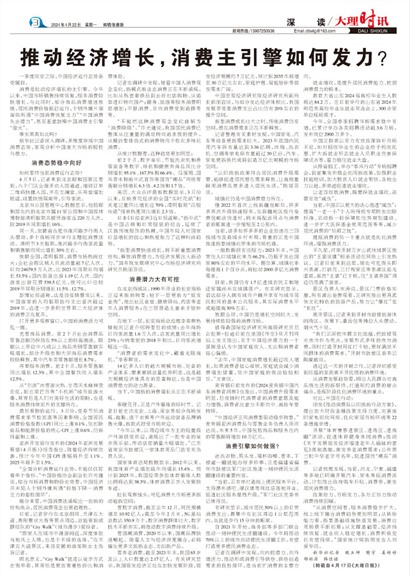消费是拉动经济增长的主引擎。今年以来,中国市场销售持续恢复,服务消费较快增长,与此同时,部分商品消费增速放缓,居民消费价格低位运行,个别外媒片面渲染所谓“中国消费恢复乏力”“中国消费失去潜力”,甚至恶意鼓噪中国消费主引擎“熄火”。
