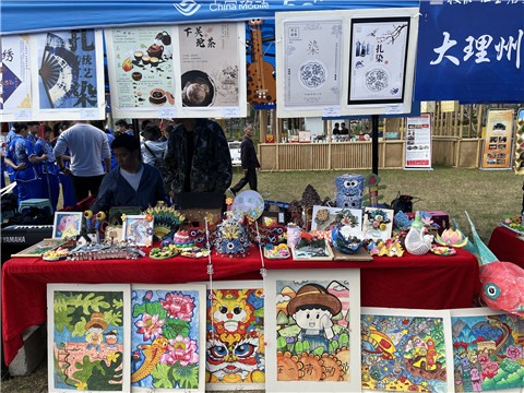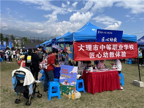 在大理市中等职业学校展区内,围满了前来参观体验的市民,只见学生们在老师的带领下,现场展示手绘扇面、插花、书法、糕点赏鉴、幼儿手绘风筝等体验项目。