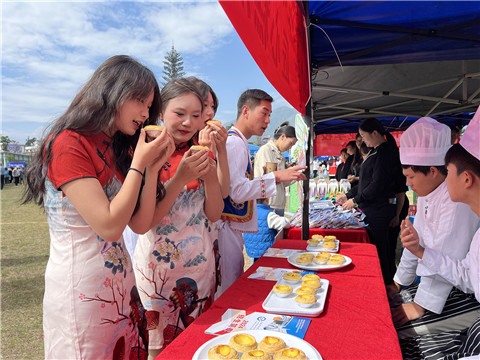 “今天我们展区非常火爆,各种特色面点刚摆出来就被抢空了,特别是蛋挞非常受欢迎。我们制作的蛋挞美味可口、香甜酥脆,得到了大家的认可。”大理市中等职业学校中餐烹饪专业学生张营高兴地说。