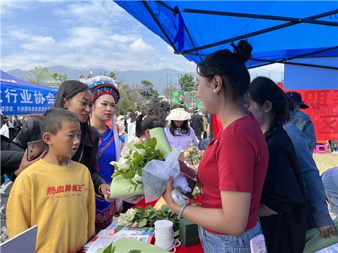 “我们展区展示的是礼仪插花,有花篮和花束,制作过程中,我们用心选用花材,用心创作作品。学校花艺社平时也会开展插花活动,丰富同学们的业余生活,提高大家的插花水平。”大理市中等职业学校花艺社社长李洁介绍。