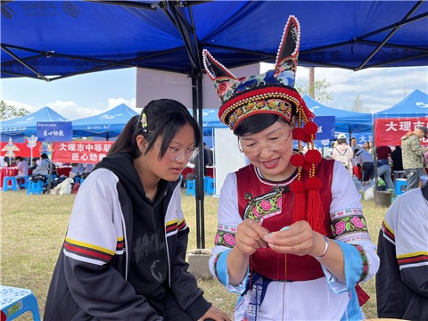 活动现场,大理市中等职业学校师生对教育教学成果与技能才艺进行展示。他们将自己的所学、所思、所创变成一件件别出心裁、精巧别致的作品,充分展示了职教学生的技能和风采。