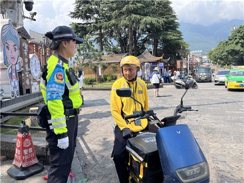 “除了日常警务要十分熟悉以外,我们还要对警务礼仪、普通话规范用语、大理景区线路等进行培训。在暑期大理旅游持续火爆的时候,我们因地制宜开展了‘交警小姐姐的暑期交通安全提示’‘点赞女骑小姐姐们’‘除了美景无限,还有警花小姐姐的守护’等形式多样的法制宣传教育,充分展示大理市警方新形象。”市公安局交警大队机动中队辅警张颖娟说,“在面对群众,特别是外地游客的时候,我们女骑警有着先天的优势,我们有柔性亲和力、耐心沟通力,我们用耐心的服务、热情的笑容营造出畅通和美的道路交通环境。在执勤过程中,常常会有游客为我们的耐心服务点赞。”